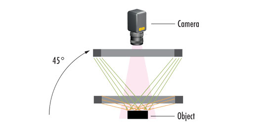 So können Sie mit einem weißen Punkt- oder Balkenstrahler verschiedene Objekte (diffus und spiegelnd) mit partieller Hellfeldbeleuchtung darstellen.