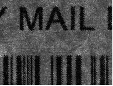 Tabelle 2 enthält Bilder der gleichen Teile, die mit dem telezentrischen 0,69X-CobaltTL-Objektiv aufgenommen wurden. Wie bei Objektiven mit Festbrennweite gilt auch hier: Die Hintergrundbeleuchtung ist am besten geeignet, um einen hohen Kontrast an den Objektkanten zu erzeugen. Die Verwendung eines telezentrischen Bildverarbeitungsobjektivs und einer Hintergrundbeleuchtung würde zum Beispiel die genaue Vermessung der Löcher in der Leiterplatte (E) oder die Inspektion des Getriebes (D) und des Verschlusses (B) ermöglichen. Die Strichcodes des Fläschchens (A) und des Versandetiketts (C) sind nur aufgrund der hohen Vergrößerung des telezentrischen Objektivs im Vergleich zu den Objektiven mit Festbrennweite und seiner Fähigkeit, Licht zu sammeln, sichtbar.
