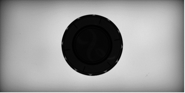 Tabelle 1 zeigt Bilder, die mit Objektiven mit Festbrennweite aufgenommen und mit einem Hintergrundlicht beleuchtet wurden. Aus den Bildern ist ersichtlich, dass eine Hintergrundbeleuchtung ideal ist, um eine Silhouette eines Objekts zu erzeugen. Dies ist ideal für Objekte, die nicht transparent sind, wie der Verschluss (B), das Getriebe (D) und die Leiterplatte (E). Der Text auf dem Versandetikett (C) kann mit dieser Art von Beleuchtungsgeometrie nicht erkannt werden und ist daher für Anwendungen der optischen Zeichenerkennung (OCR) nicht geeignet. Bei der Abbildung von transparenten Glasobjekten wie dem Arzneimittelfläschchen in A kann mit einer Hintergrundbeleuchtung der Flüssigkeitsstand oder die Platzierung des Etiketts geprüft werden. Insgesamt ist diese Art der Beleuchtung ideal für die Kantenerkennung oder die Überprüfung von Teilen, da sie einen deutlichen Unterschied in der Graustufenintensität zwischen Objekt und Hintergrund erzeugt.