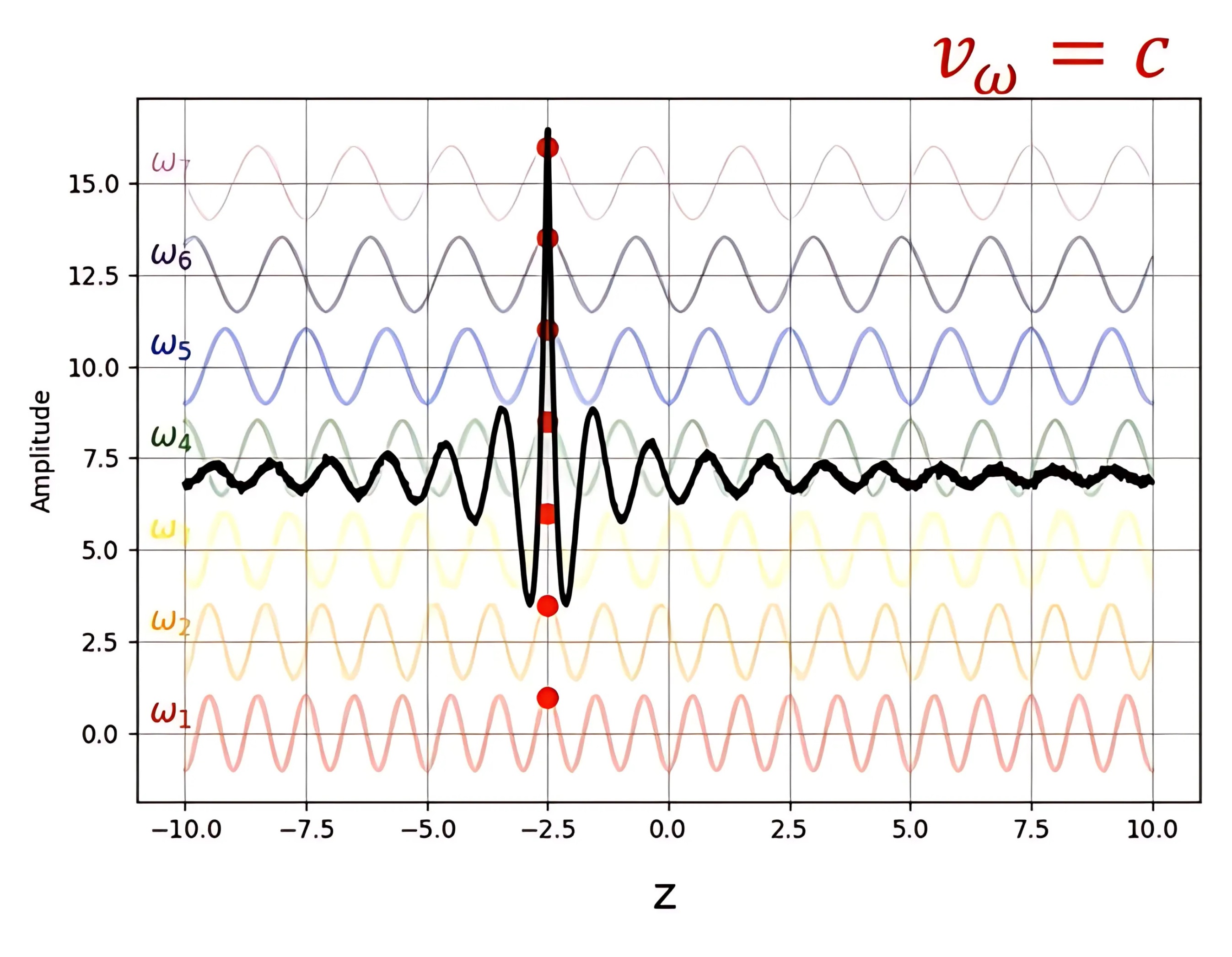 However, over time, because of the pulse’s wide spectral content, these wavelengths start to go out of phase, causing destructive interference. This introduces a fundamental lag between the pulse envelope (the region where total constructive interference occurs) and the constituent waves that form the pulse. This lag is known as group delay.