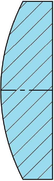 | Beschreibung | Ein Material mit einer konvexen sphärischen Oberfläche und einer planen Oberfläche | Zwei verklebte Materialien, meist konvex auf beiden Außenflächen, und eine verklebte sphärische Oberfläche innen | Ein einziges Material, typischerweise ist eine Seite eine konvexe Asphäre und die andere Seite ist plan |