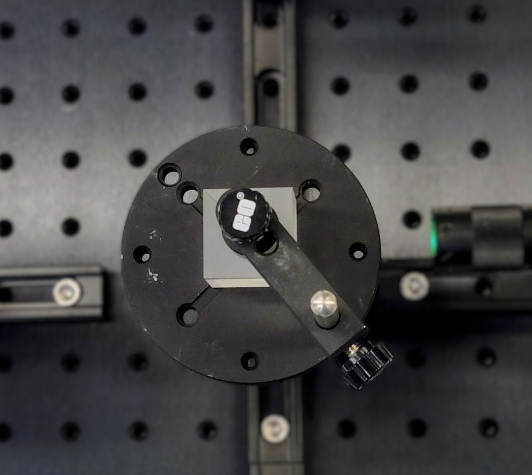 Für die Montage des Lasers montieren Sie den ID-Adapter der E-Serie in die kinematische Halterung der E-Serie und setzen dann den Laser ein und ziehen die Feststellschraube fest, wie in Abbildung 4 gezeigt. Der in der obigen Tabelle empfohlene Laser mit der Produktnummer 26-938 wird mit 10 mW verkauft. Aus Sicherheitsgründen können Sie mit der Laser-Software die Ausgangsleistung auf nur 1 mW reduzieren. Ein roter Diodenlaser oder ein vergleichbarer Laser mit geringer Leistung, wie z. B. die Produktnummer 72-817, könnte, je nach Verfügbarkeit und Budget, ebenfalls eine gute Wahl sein. Zu erwähnen ist, dass Diodenlaser eine für Lehrzwecke ausreichende Kohärenz besitzen, wie Sie in diesem Experiment sehen werden. Abbildung 5 zeigt die an einer Stange montierte Laser-Baugruppe.