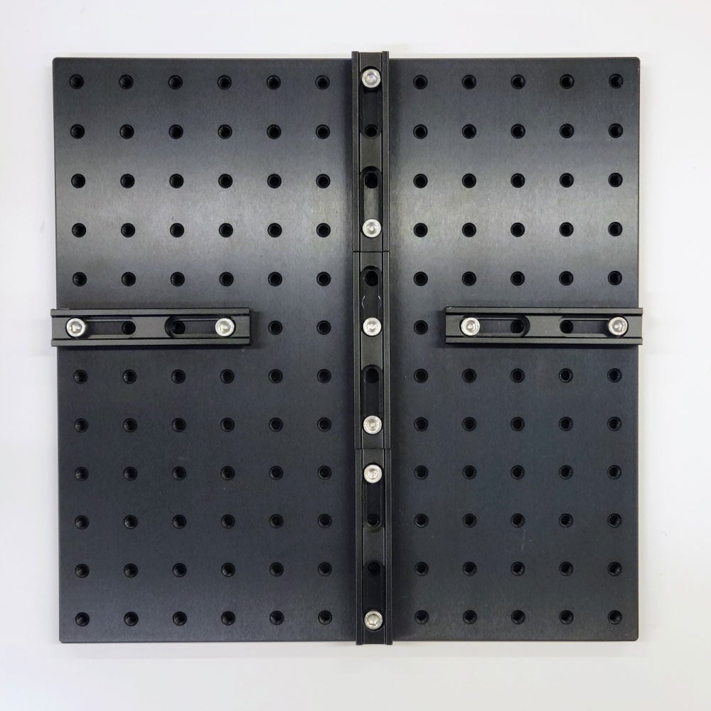 Als nächstes erfolgt die Montage der Stangenhalterungen: Befestigen Sie die fünf TECHSPEC® Stangenhalterungen mit Inbusschrauben (M6x1,0) an den Mikroreitern, wie in Abbildung 2 gezeigt. Abbildung 3 zeigt die fertige Baugruppe.